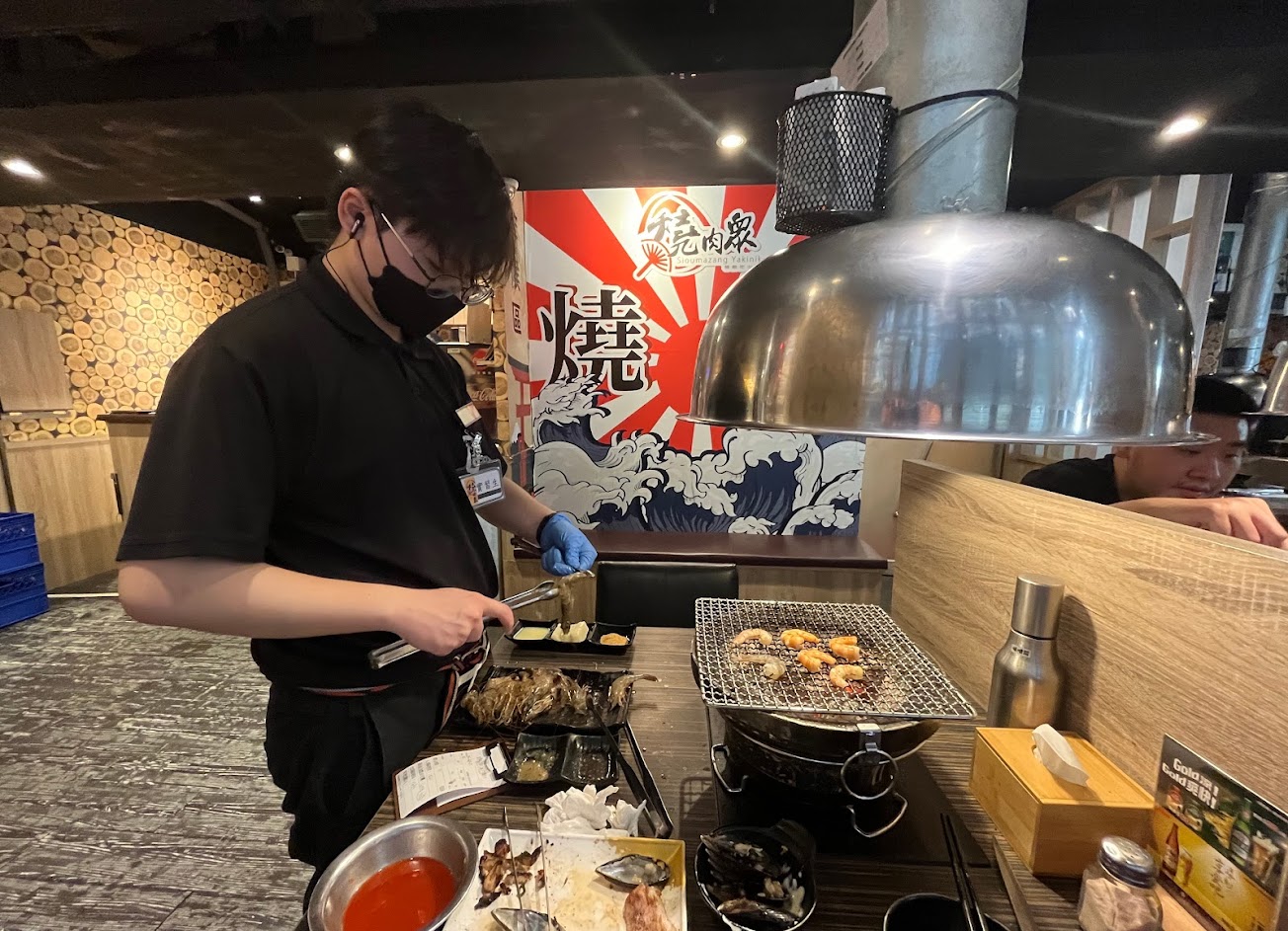 碰巧沒遇到評價上說的貼心服務,沒有幫烤、沒有幫剝蝦、也沒有主動講解怎麼烤,不過這些本來就非必要。主要的年輕男服務生可能比較緊張,偶爾向女服務人員提問請教,還是有得到解答幫忙。