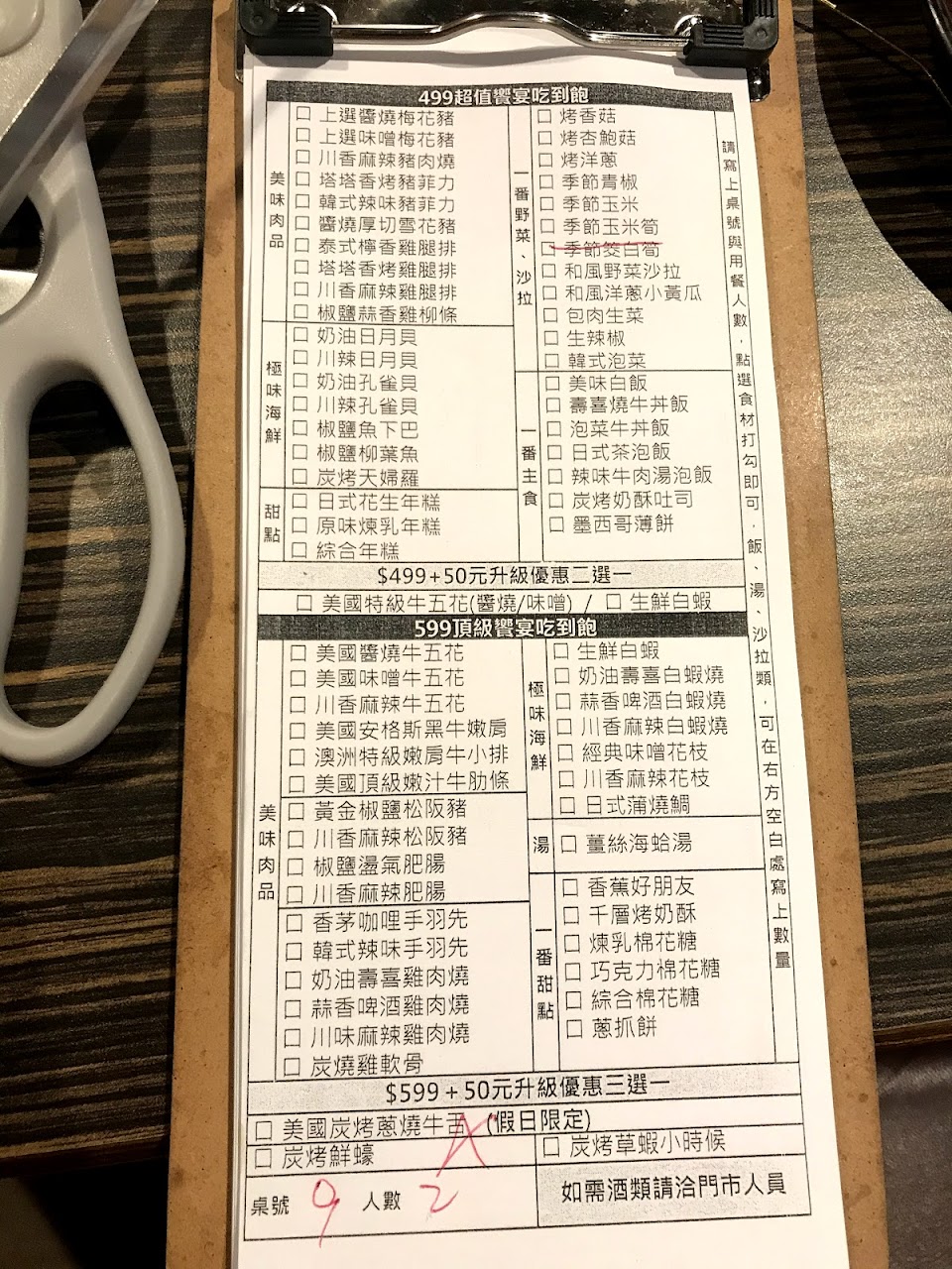 點好$799+$50的,牛肉種類多一點,好吃,服務很好,烤肉網也換得很密?