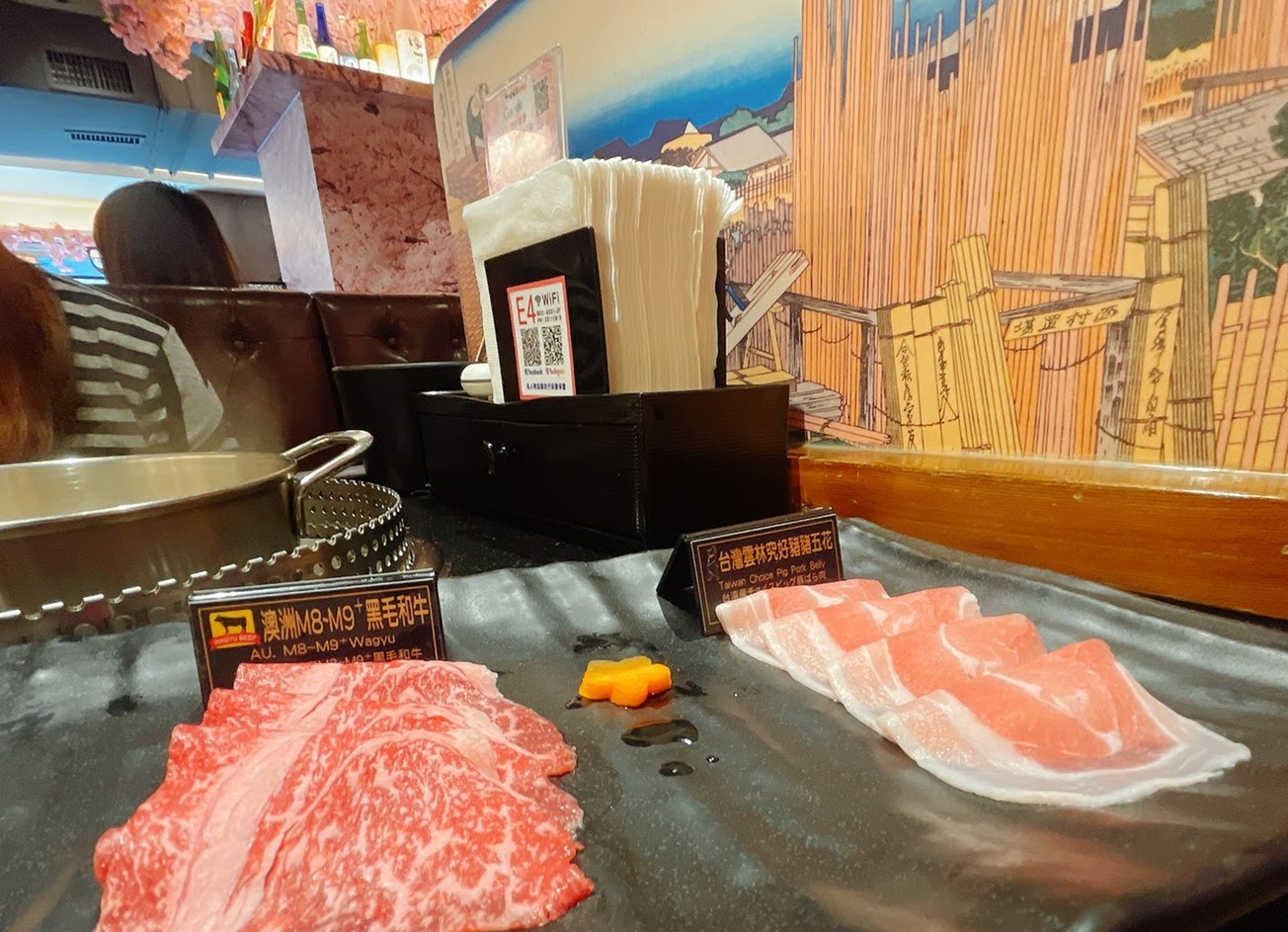 一進門就有和服可以租借拍照體驗。 店家採用app方式點餐,價位分888、988、1688。如果要享用飲料跟Haagen Dazs必須+68,喝啤酒/沙瓦+98。 用餐時間2小時,送餐速度很快,超時會加收費用,要把握時間用餐。 肉質很新鮮,不論是和牛、雪花,牛小排都很好吃。肉品分為火鍋跟燒烤專用不同肉品! 環境很不錯,用餐很舒服的地方。洗手間有提供牙線棒跟漱口水,很特別還放了Dyson吹風機。 整體很好吃,沒什麼雷。雖然價位較高,但也蠻值得的!