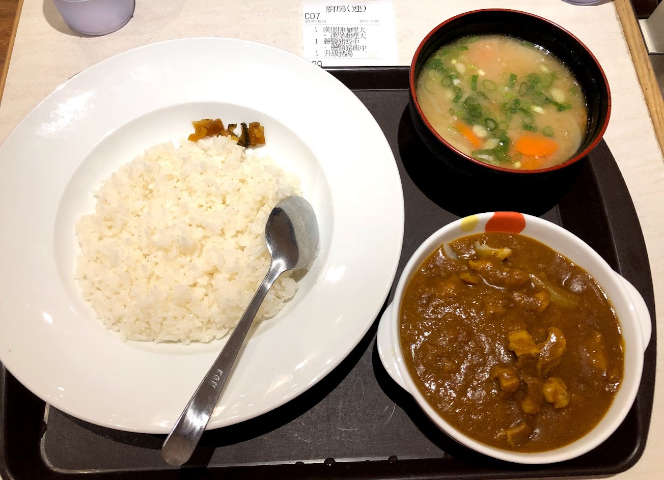 疫情前吃的咖喱圖,在日本吃過好幾次松屋的咖喱口味偏辣,到台灣變成甜咖喱了好失望,希望可以跟總公司反映不要調整味道以日本口味在台灣販售,不知為何其他品項我吃起來感覺差不多,就咖喱差特別多而且顏色偏黃口味很甜跟menu照片根本不一樣