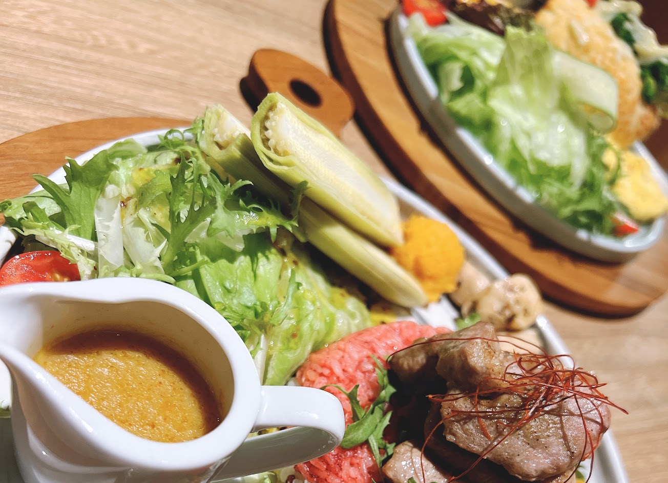 焦糖舒芙蕾柔嫩濕潤,不會太甜很好吃 雞腿彩虹飯菜色很豐富也很美味,還有一小盅咖哩 但適合不趕時間的人,出餐真的非常慢
