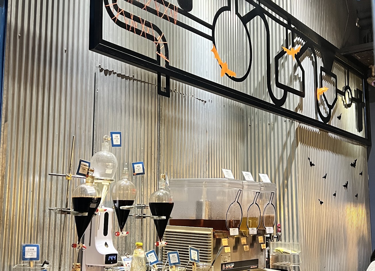 鍋太淺了,雖然沒有太多料在裡面還是容易噴出鍋子。材料味道不錯,氛圍有做一些實驗室風格特色。