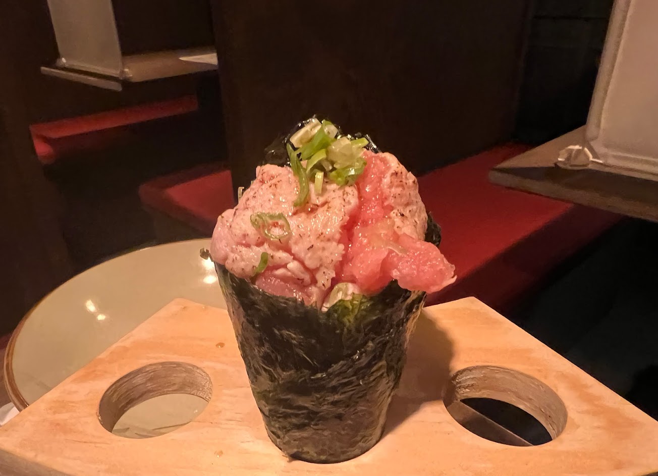 超級可愛的餐廳。燈光營造出舒適的氛圍。他們確實接受預訂,我建議你這樣做,因為他們的空間很小。 這裡的壽司以散壽司或手捲的形式供應。魚超級新鮮。 我會推薦來這裡