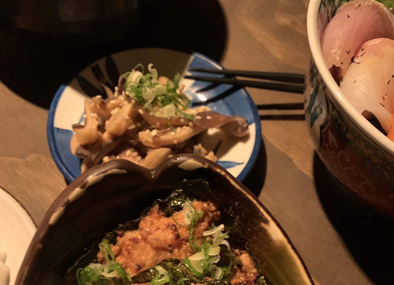 這是我第一次吃日式無菜單料理,可以感受到店家餐點的精緻,當天吃了很多種魚類的壽司,搭配不同佐料,味道很特別。餐廳位置不多,但是面對廚師,整體裝潢很日式,很有氛圍。
