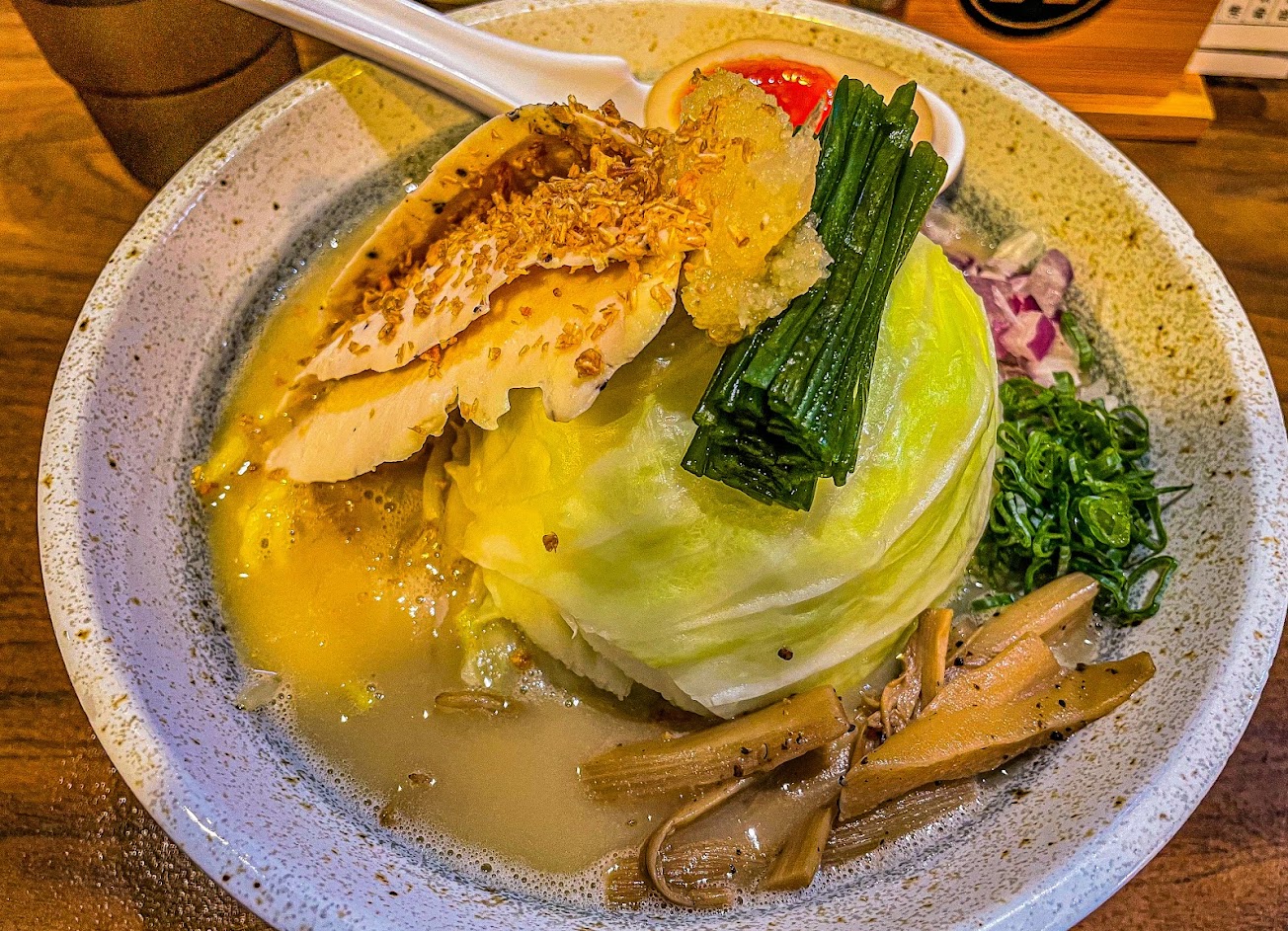服務很周到,一整桶泡澡的溏心蛋讓人很有食慾,野菜拉麵半顆高麗菜很浮誇,但吃了五口才有辦法吃到麵,所以我沒有吃完,嗚嗚。