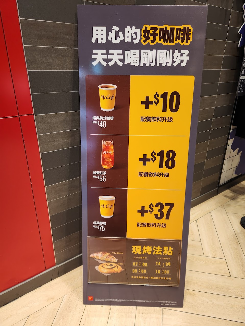 買好電影票,離放映時間還有一小時,先去麥當勞坐坐打發時間!點了熱美式咖啡檸檬紅茶和肉桂捲!這間是老店,經過數次裝修,我是老西門人,來過很多次,有時帶小孩來,有時和朋友來!隨著時間及物價上漲,麥當勞的東西也漲了非常多!假日下午幾乎一位難求! 服務 內用 餐點類型 其他 平均每人消費金額 $1-200 餐點:4 服務:3 氣氛:4 建議的餐點 薯條 蘋果派 蛋捲冰淇淋 肉桂捲
