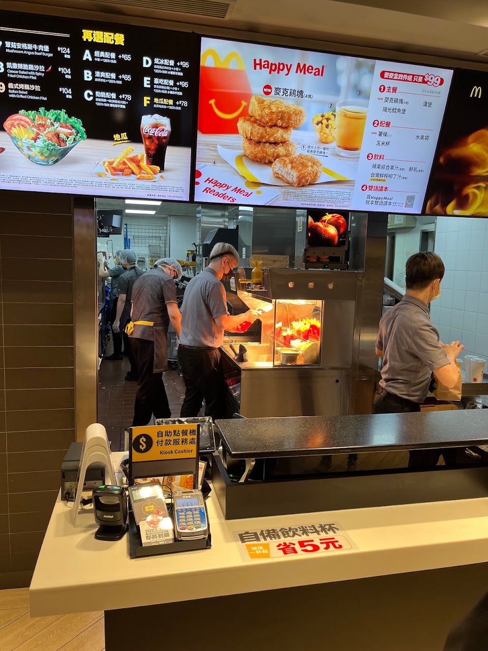 重新裝潢很漂亮,還有自助點餐機,即使尖峰忙碌時段也可以不必透過櫃檯人員結帳,只需要透過自助點餐機就可以完成所有結帳流程,可以使用信用卡、電子票證或行動支付付款,此外,還可以利用手機載具儲存電子發票,不需要列印出來即可自動兌獎。點餐完畢後只要索取機器列印出來的收據及叫號單等候廚房將餐點製作完畢後就可以取餐了,非常的方便。台灣苦苦等了好幾年終於將自助點餐機引進,實在算是台灣企業接手麥當勞後的一大福音,現在也因應自助點餐機的安裝,許多麥當勞分店都開始重新裝潢,格局也重新設計,變得更有現代感,同時也可以減少人力配置,進而降低人力成本,提高生產效率,希望麥當勞可以越來越好,餐點的部分更多樣化,也不得不說麥當勞真的是一間食品衛生控管很嚴格的連鎖速食店,吃得很安心!