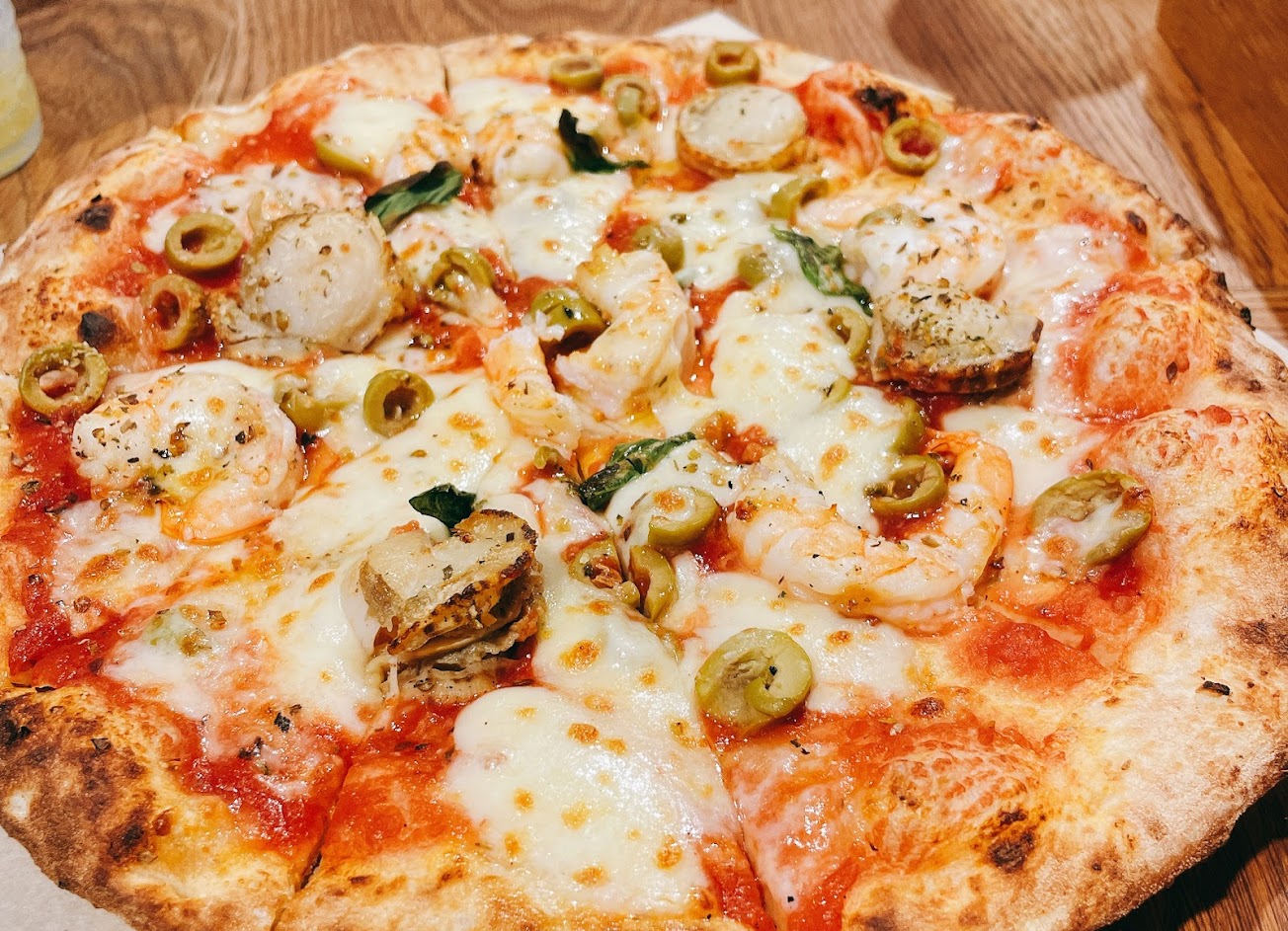 漁夫海鮮pizza 料少且不均勻 頂多值其價錢一半 但味道極其普通 給我半價我也不想再購買 真的不能單看google 評價選餐廳