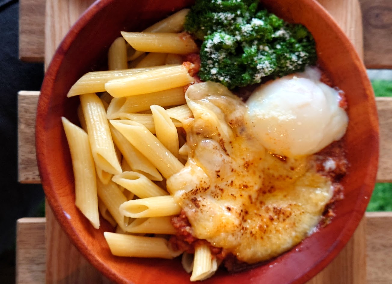 今天來嘗試水波蛋肉醬筆管麵 蠻喜歡肉醬的味道 之後來想試試看其他餐點跟甜點