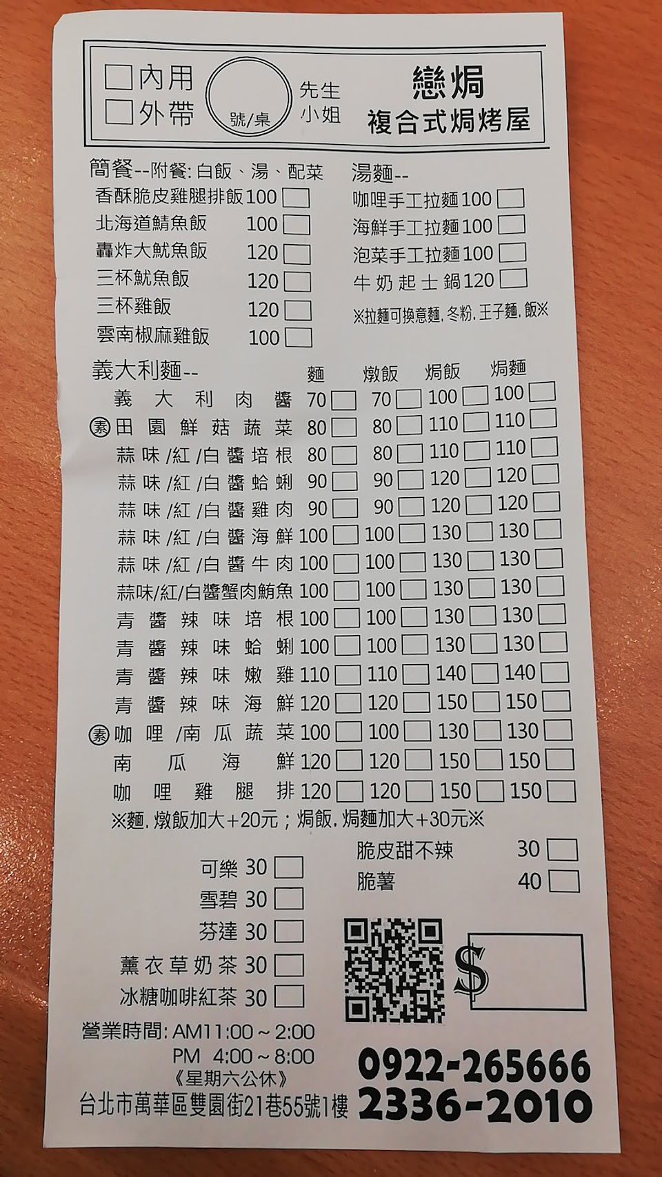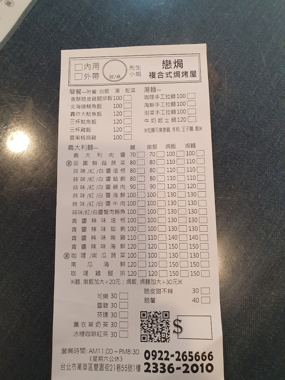 餐點從涵蓋義大利麵、小火鍋到台式簡餐