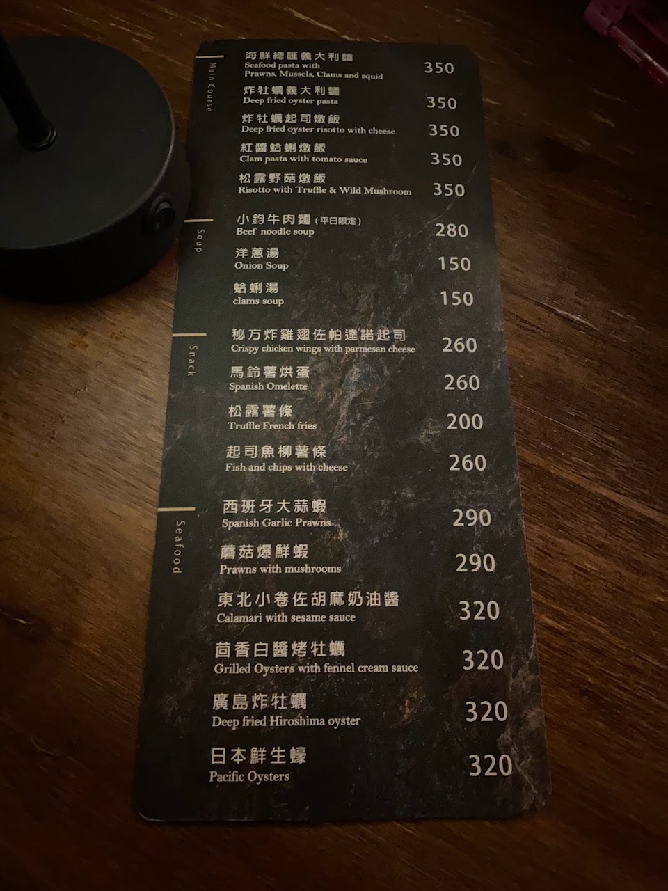 空間: 雖然地方不大,但是氣氛佳,目前是平日,背景音樂阿妹、周杰輪 餐點部分: 但是餐點非常精緻,尤其西班牙大蒜蝦 調酒部分: 6號非常順口清爽(萊姆酒基底,茶感),還沒嘗試酒感基底厚的調酒,相信一定也不差。 餐點:5 服務:5 氣氛:5