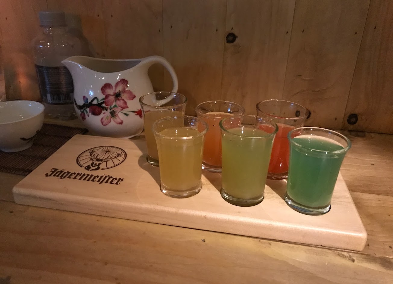 另外點了家鄉味愛玉,有種傳統喜宴甜湯的味道,頗好喝,家庭煮夫則是一種菜味加美乃滋,很怪但造型有趣,剛開幕老闆還多送我們一排shot !