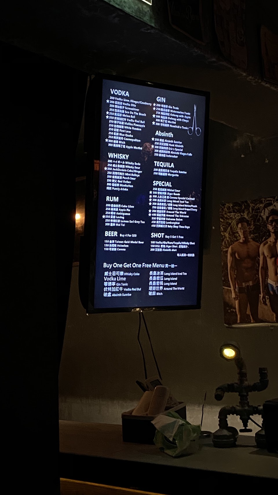 特色:幾乎每小時都會分階段關燈,從凌晨1點開始就有點黑了(可以看到人臉),是一家安靜的酒吧,平日人不多。如果您喜歡裸露,可以參加 Fundoshi Day。 Fundoshi 的租金為 100-200 新台幣。