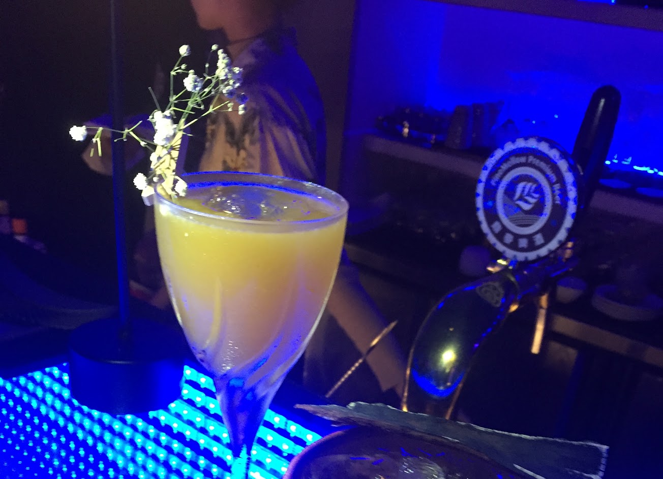 signature cocktail的意境非常特別,餐點表現也很好,金沙系列比熱炒店好吃,泡菜、豬頭皮味道都很棒,跟調酒、啤酒都很搭,店內有點昏暗,但可以好好的欣賞牆上的螢光塗鴉創作。