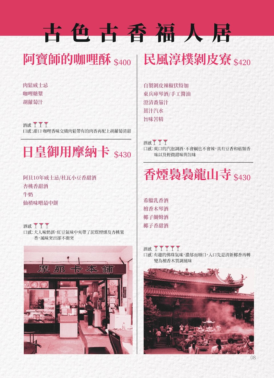 台灣小吃調酒,美人湯、米糕粥、龍山寺、愛玉冰!