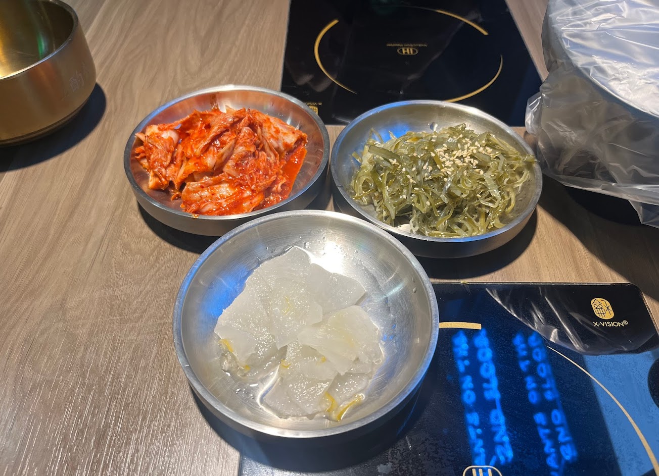 火鍋蒸籠塔保留海鮮的美味?好吃又營養,韓國泡菜、柚子蘿蔔、海帶絲小菜爽口免費且可續加呦!很開心服務人員親切的服務喔!