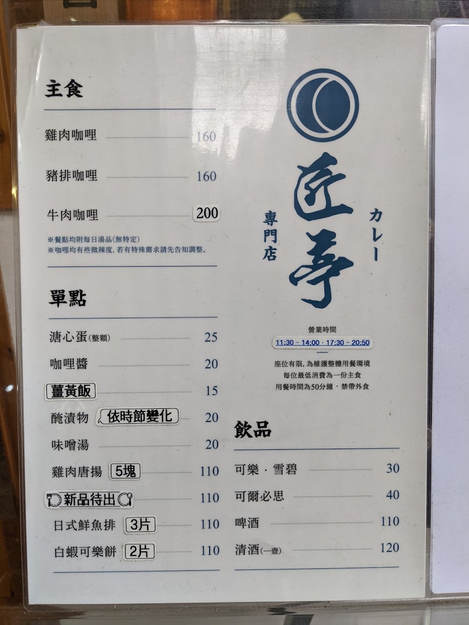 2024最新在地推薦餐廳的菜單_匠亭 咖哩的菜單、圖片