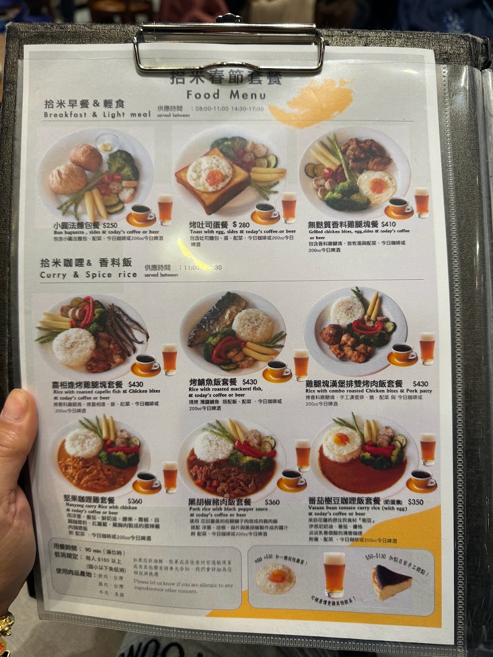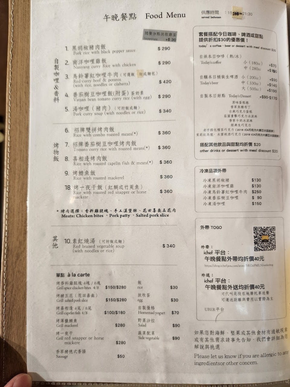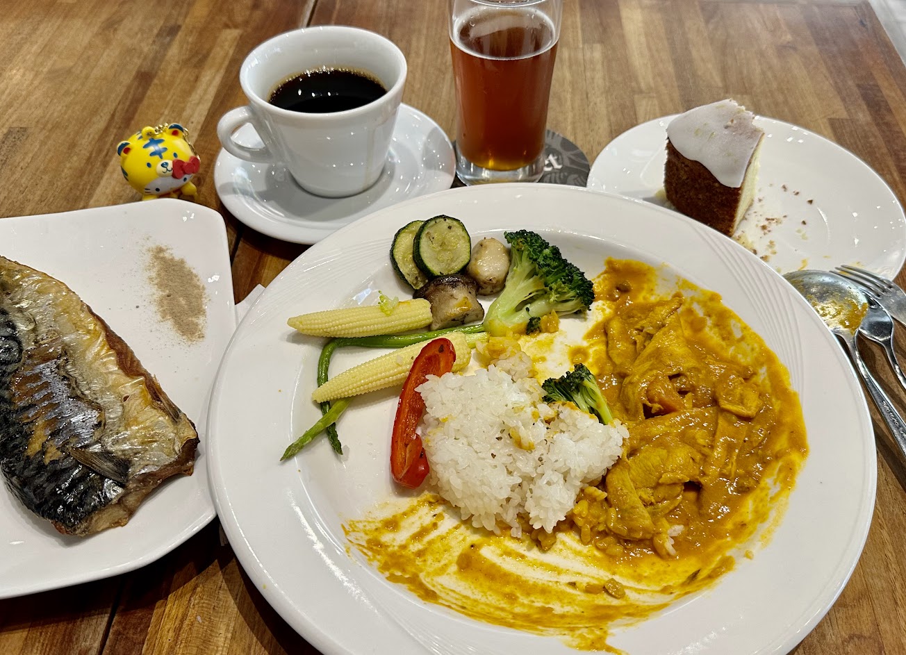 餐點是招牌咖哩烤肉飯,附餐咖啡和甜點。