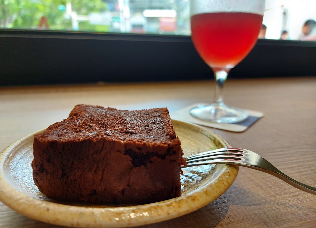 我覺得很不錯,整個店弄得清爽,我並沒有點主餐,而是以輕食為主。點了一份可頌+蛋,以及小漢堡,至少漢堡肉排是他們自己自製的,吃起來紮實,跟我在東區的山本漢堡排差不多。最後,店家還送一份巧克力蛋糕,真的是驚豔。吃飽了,我還加買一條巧克力蛋糕回家,有得名的巧克力蛋糕確實好吃。