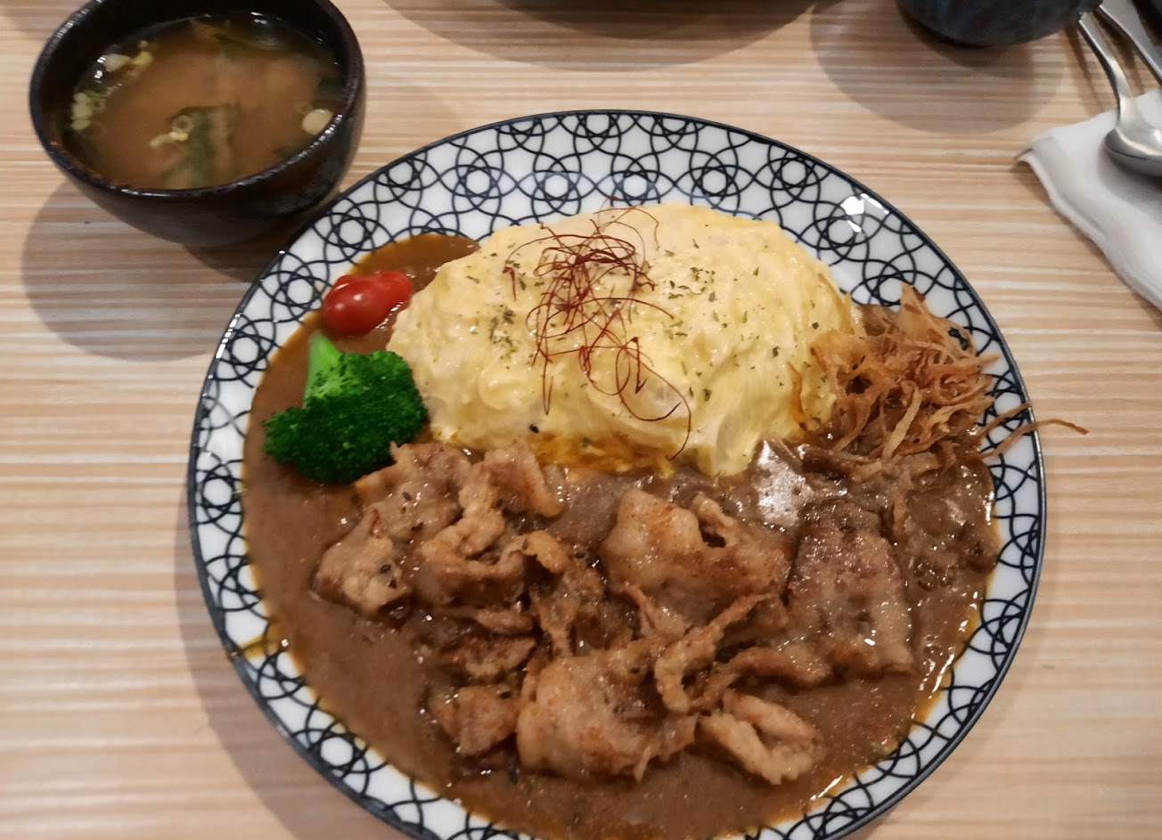 咖喱豬五花蛋包飯很充足 餐廳環境也很舒適
