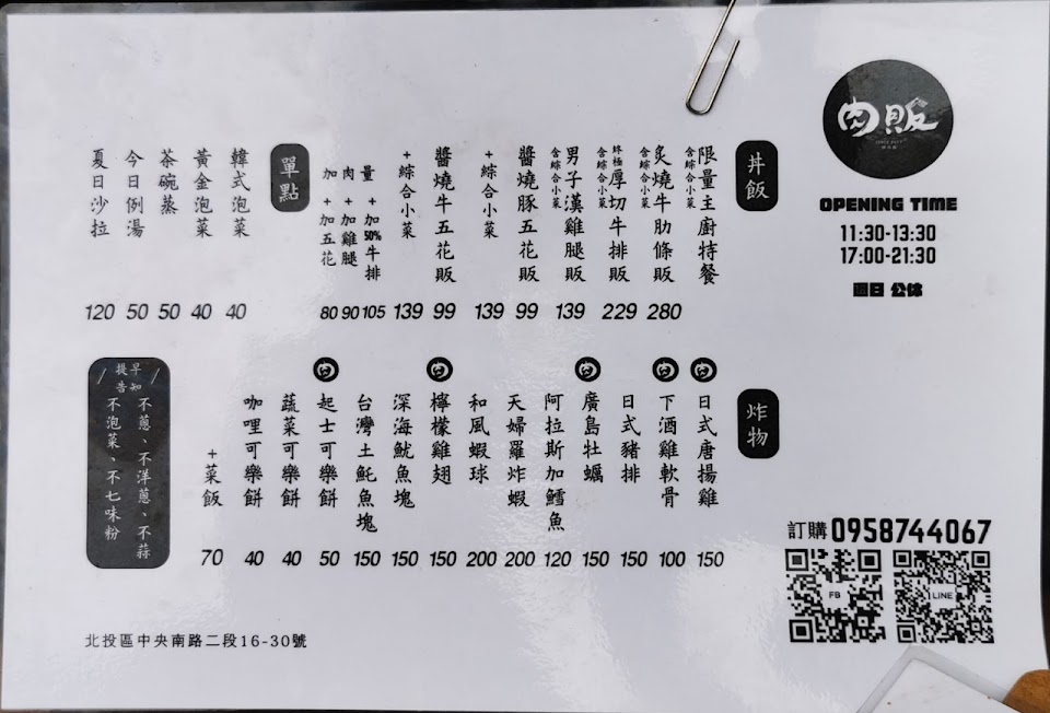 2024最新在地推薦餐廳的菜單_肉販 北投店 燒肉販 日式便當 奇岩晚餐 奇岩午餐的菜單、圖片