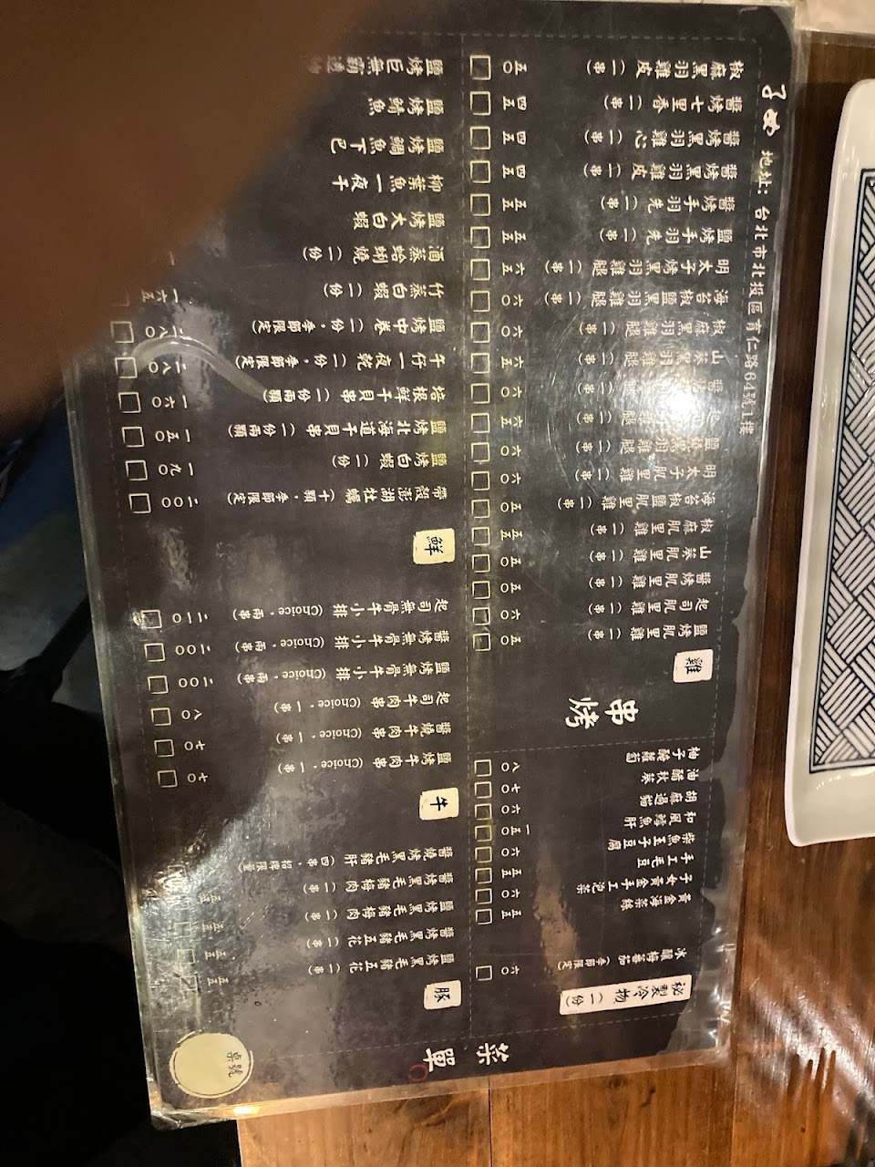 店員拿菜單過來,菜單是深色的,給了一隻金色的筆讓我們點菜,但是不知道是筆沒水?還是原本那個畫在菜單上原本就很不清楚,有點擔心店員會看不清楚,我們還特地問說,這樣看得清楚嗎?店員自信滿滿地說沒問題,也不跟我們核對菜單,結果漏點了兩道菜!