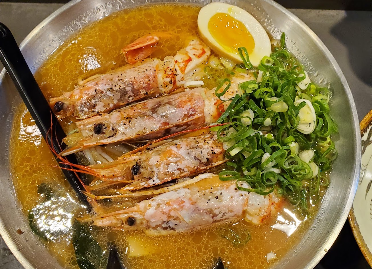 「炙烤四隻大蝦」痛風款超濃蝦湯拉麵(˶‾᷄ ⁻̫ ‾᷅˵)泡完溫泉可以來一碗?