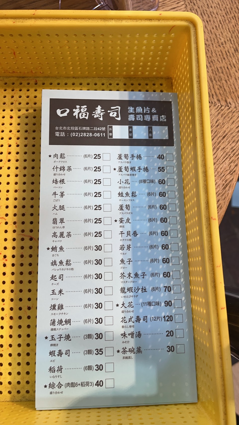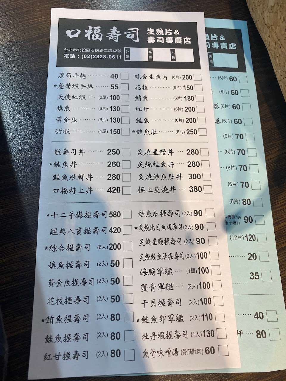 2024最新在地推薦餐廳的菜單_口福壽司-北投石牌店的菜單、圖片