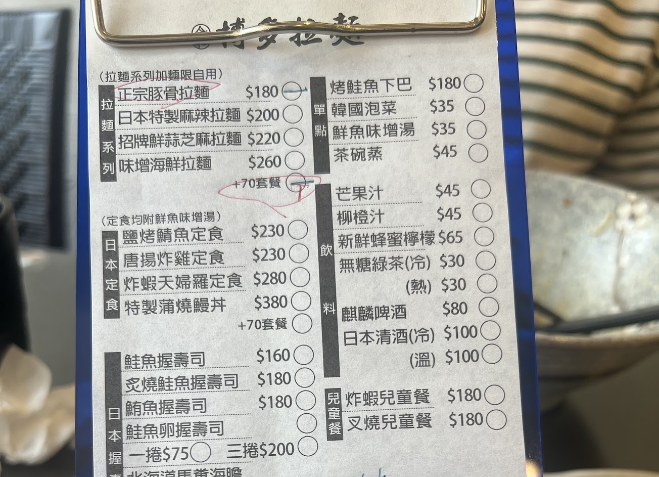 除了拉麵,又有壽司,生魚片,鰻魚飯等等,一家人進去,可以滿足每個人選項,算比純拉麵店優良。