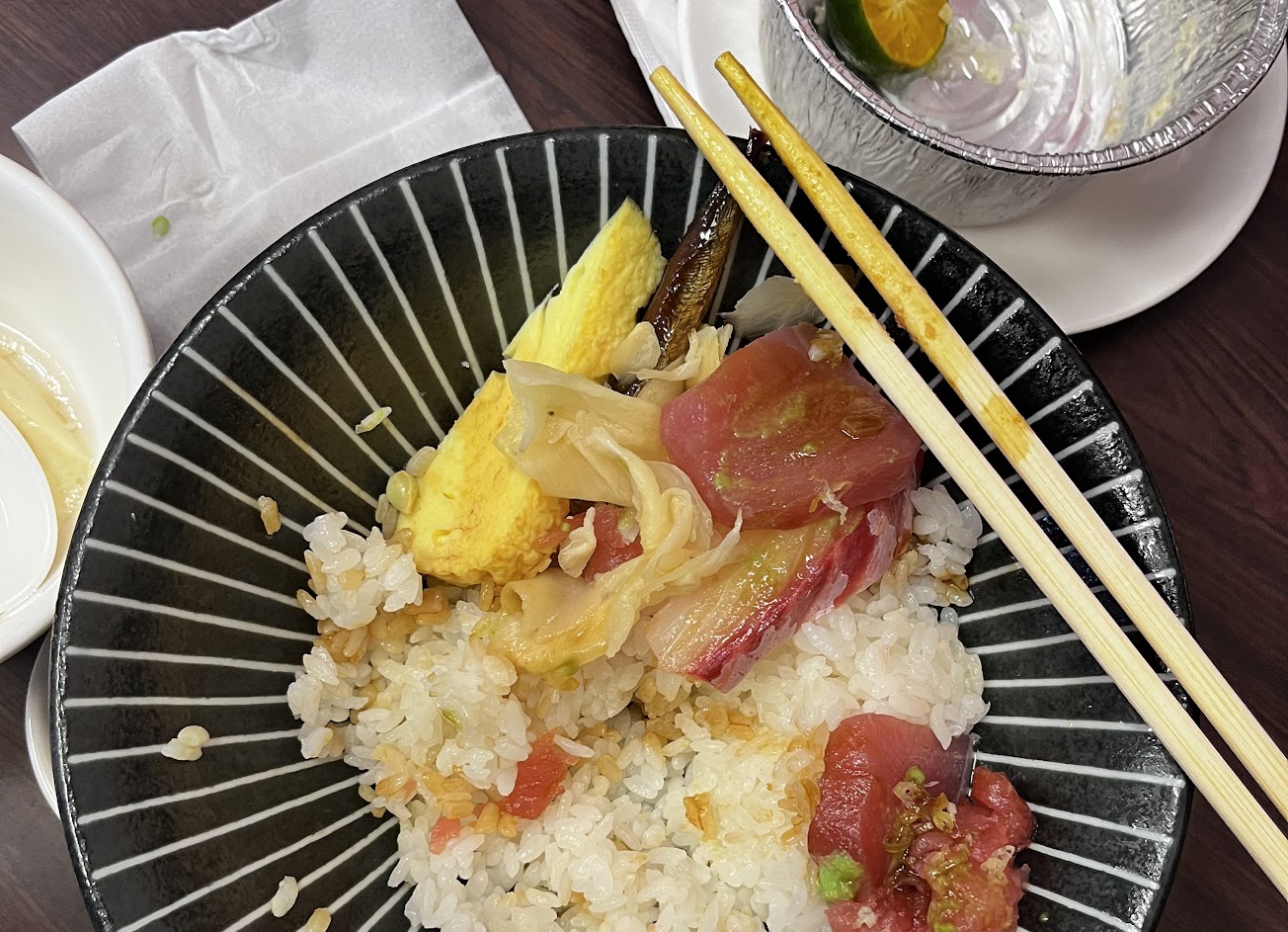 自強市場上的日式料理餐廳(符合台灣人口味),平價,口味佳,有著高C/P值,我較常吃的是蝦丼飯,是非常好吃的。