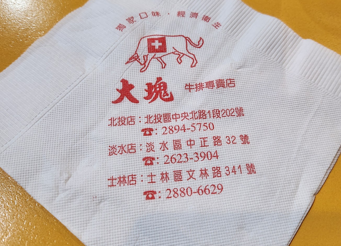 大塊牛排一直是我們很喜歡的店,從淡水、吃到士林,搬到北投後,更是常去吃,雖然搬到中央北,也是常常繞過去品嚐。好吃,搬哪兒,我們都會常常去吃的~(內用還是感覺份量大,外帶就是如圖)