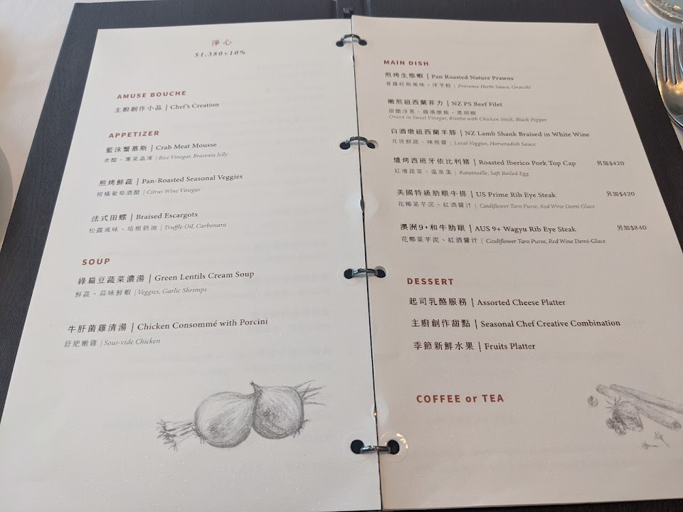 前菜、蒸蛋、手撕豬、湯品都非常驚艷,比目魚皮酥肉嫩,相較下牛排、甜點比較普通,服務態度都很好,會想再訪。