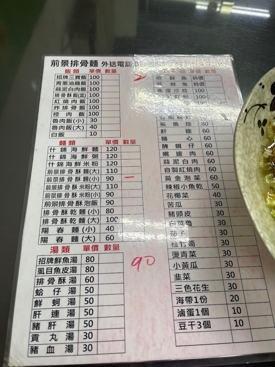 2024最新在地推薦餐廳的菜單_前景排骨酥麵的菜單、圖片