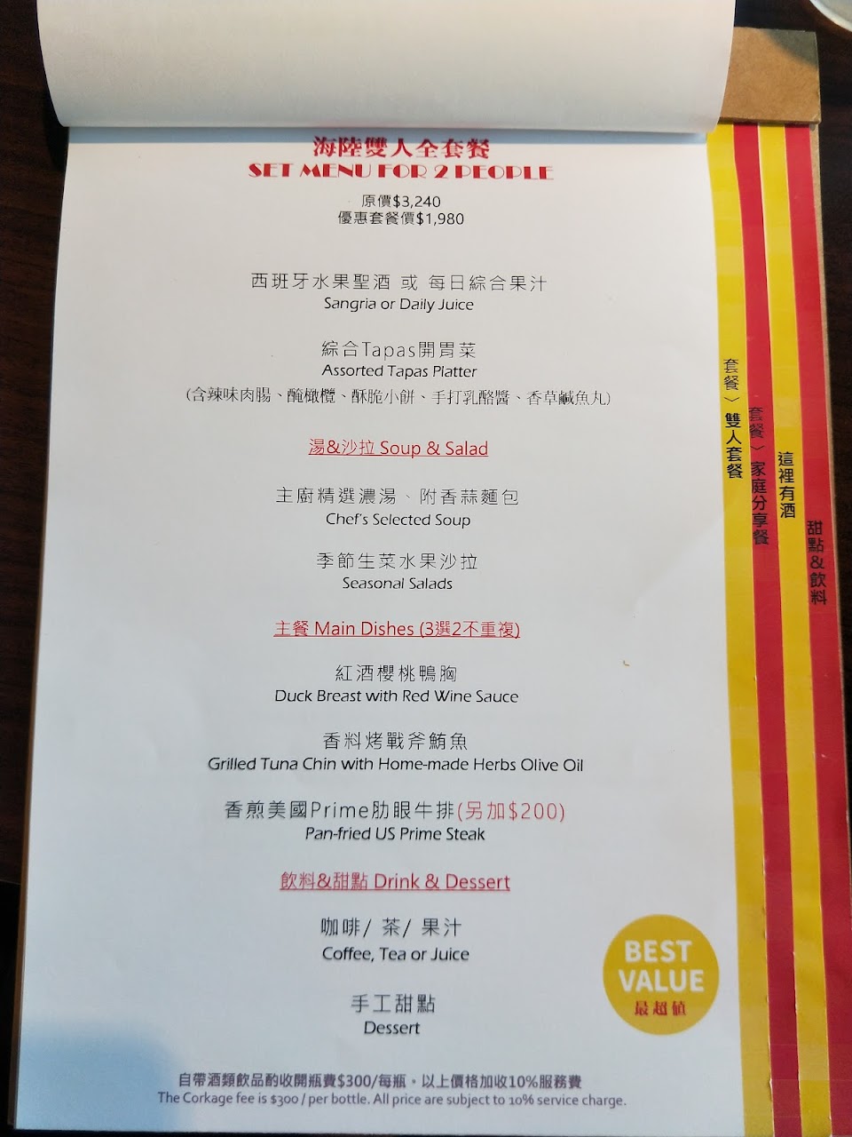 算是有特色異國料理,食量不大的我們點一份西班牙經典海鮮飯,2個人吃差不多,只是套餐的紅茶太小杯喝不過癮~~收服務費10%,外帶酒收開瓶費