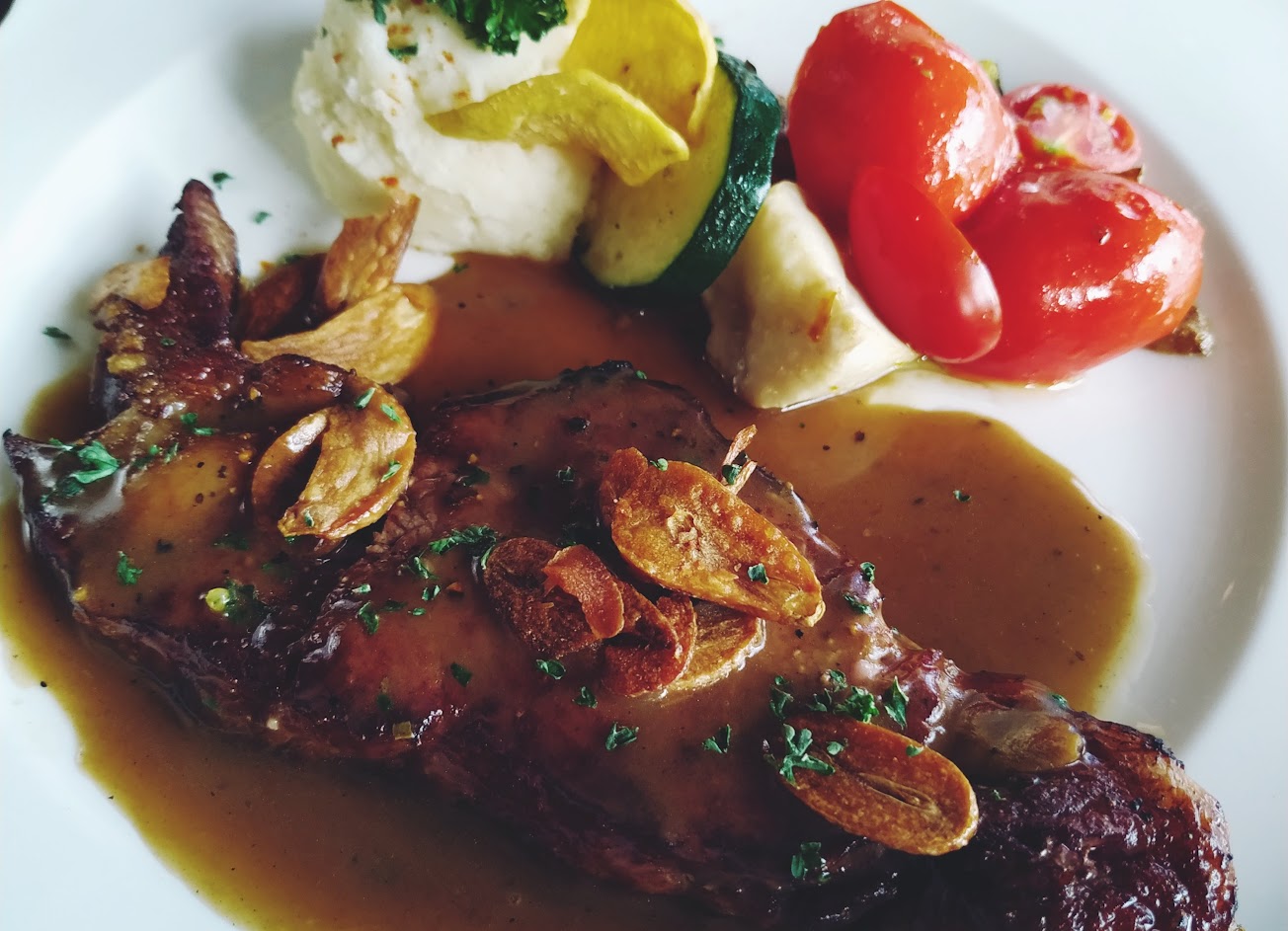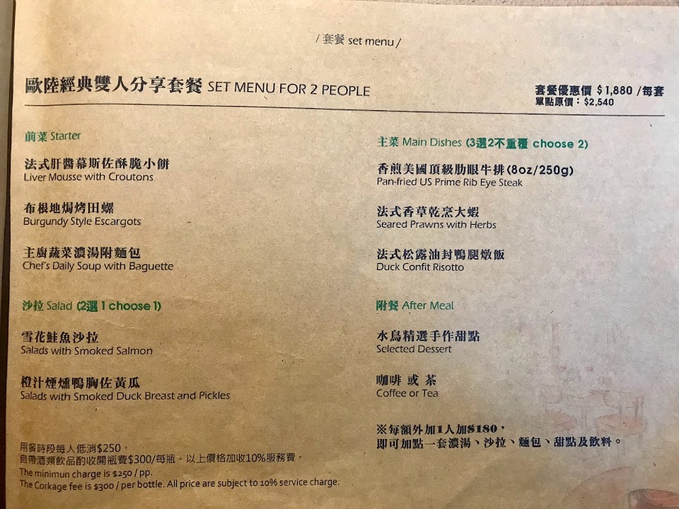 若是兩人平日中午來,也可以點商業午餐,有牛排跟雞排套餐可以選擇,價位約為500含服務費,雖然單價略高,但服務與氣氛都不錯,牛排的熟度與軟嫩也及格。