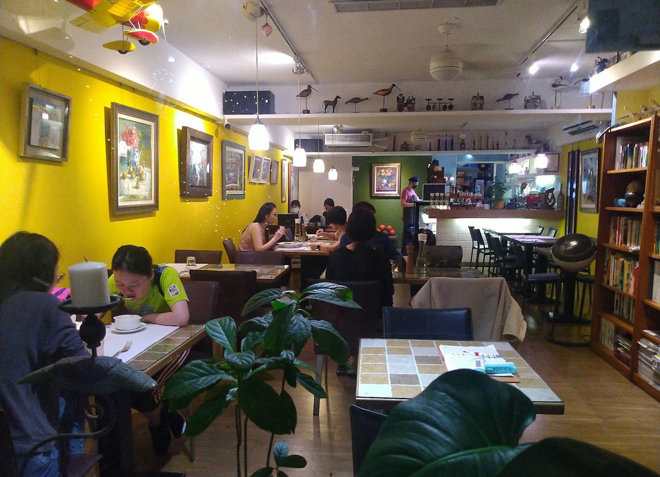 好吃。滿足。火山爆發麵,餵養了疲倦的身體;香焦比薩,加了滿滿的肉桂粉,安撫了燥動的靈魂。捧著咖啡杯,走到戶外,坐到樹下的長椅上,讓徐風帶我走向遠方。牆上清新的畫作,一幅幅都是真蹟,更加添了許多人文氣息。