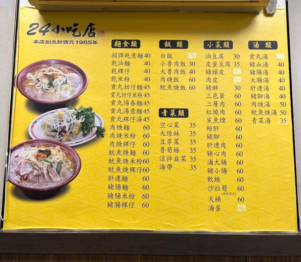2024最新在地推薦餐廳的菜單_24小吃店的菜單、圖片