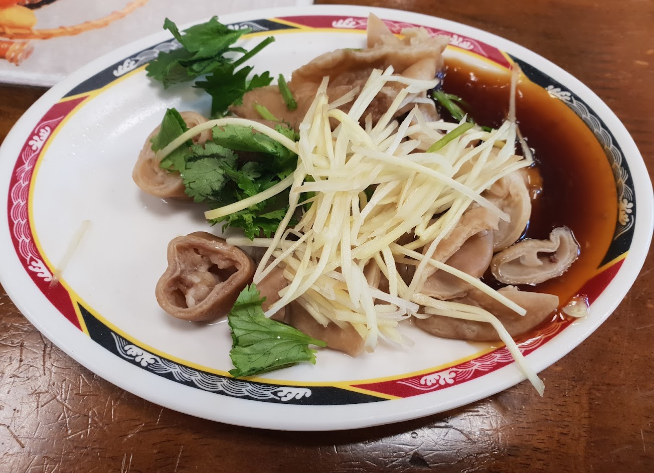 肉羹湯的肉還不錯, 但是羹湯有點重鹹。滷大腸剛吃味道不錯,吃到後來有點膩。空心菜偏油但是味道不錯。