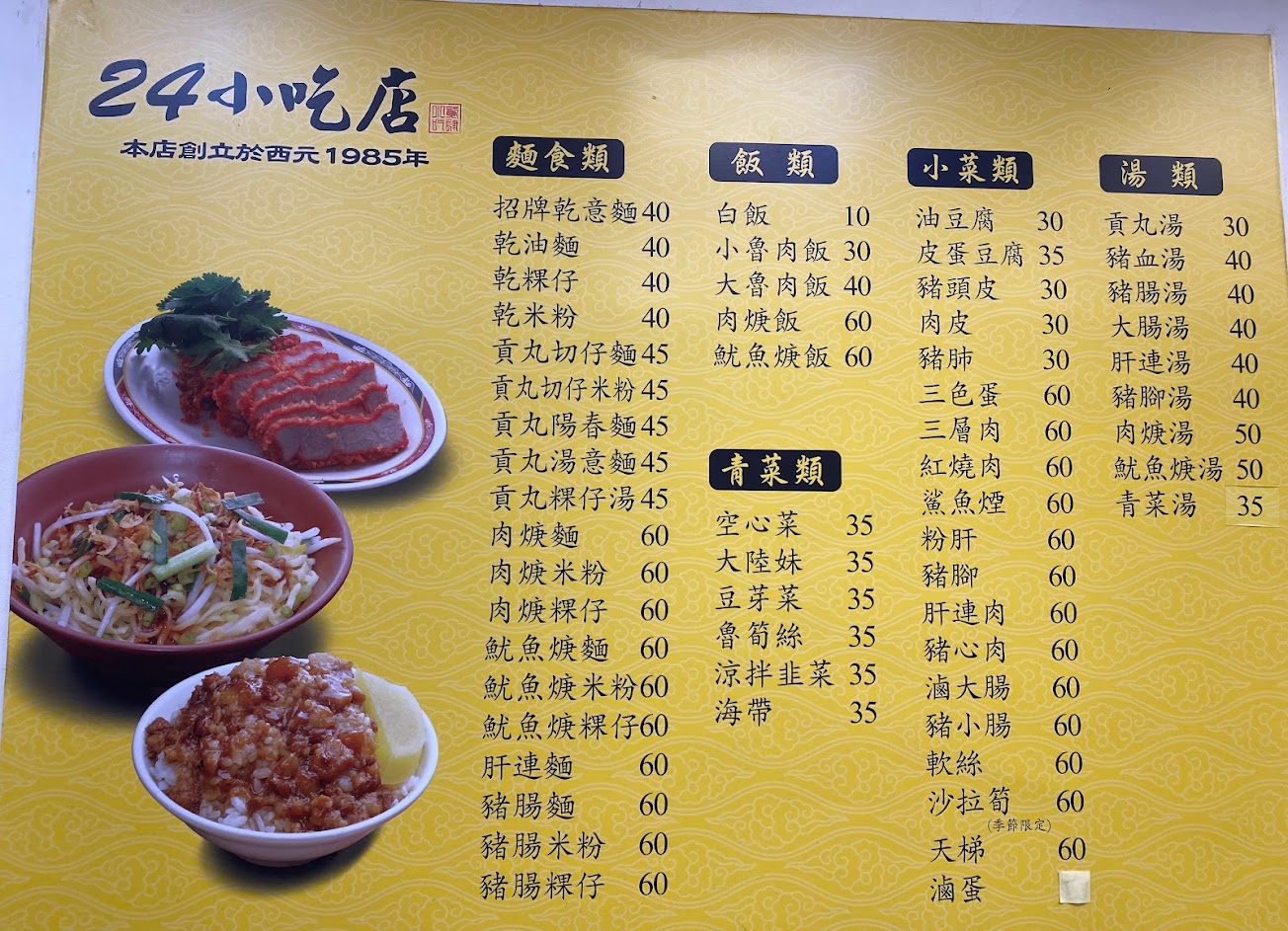 2024最新在地推薦餐廳的菜單_24小吃店的菜單、圖片
