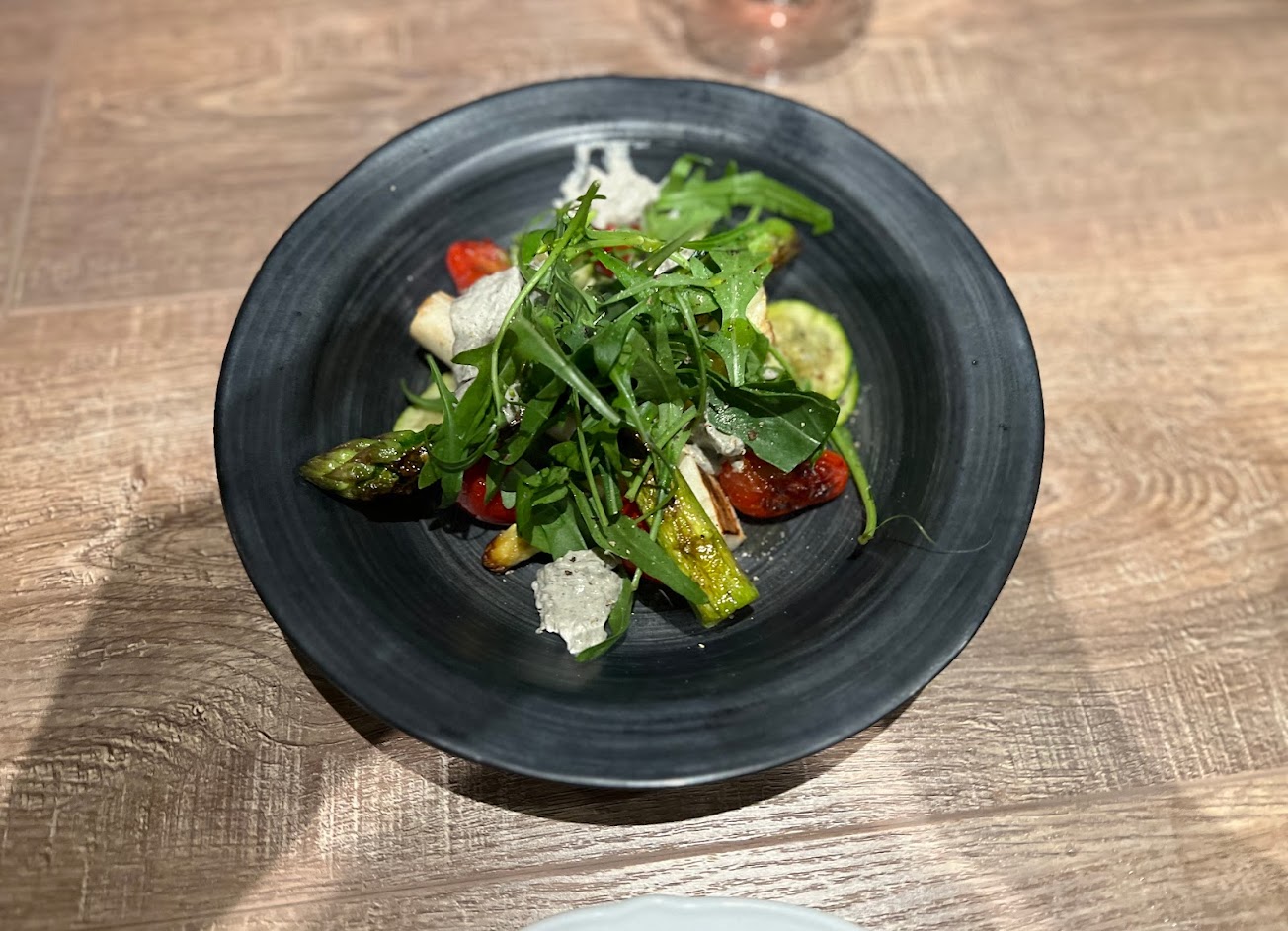 路過,是小小一間店,在雨中亮著有氣氛的燈光,於是我踏進來一探究竟,肚子剛好餓了,我跟店員說我不太餓,不太想吃澱粉類餐食,她推薦我吃份香草豬肉沙拉。已完全去除豬腥味,調味剛好,甜桃的酸甜滋味是驚喜,完食,滿滿幸福,馬上收入口袋名單。謝謝主廚對於食物的溫柔❤️