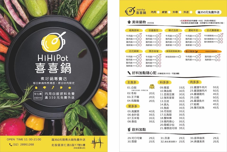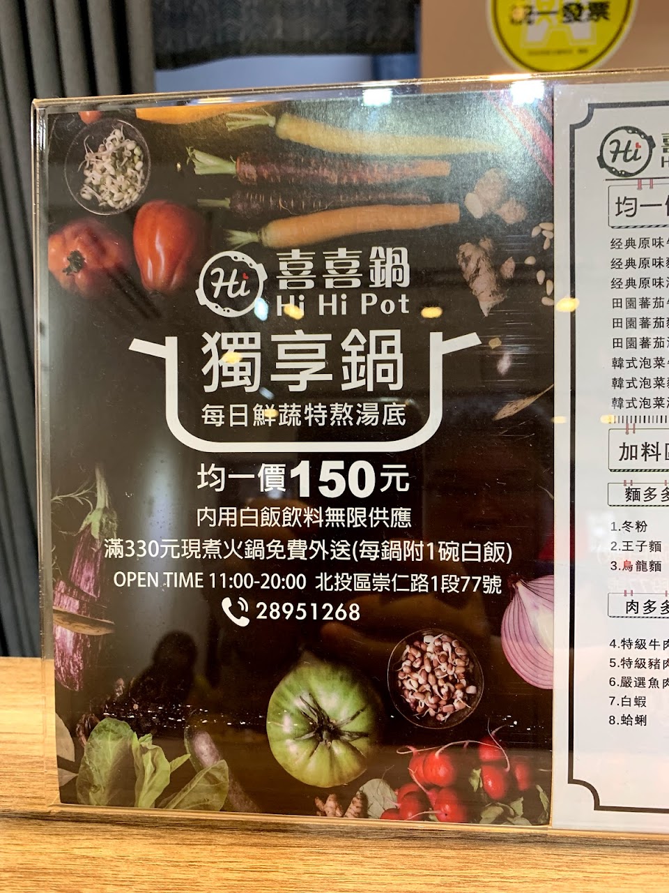 2024最新在地推薦餐廳的菜單_喜喜鍋HiHiPot北投奇岩店淡水線奇岩美食小火鍋的菜單、圖片