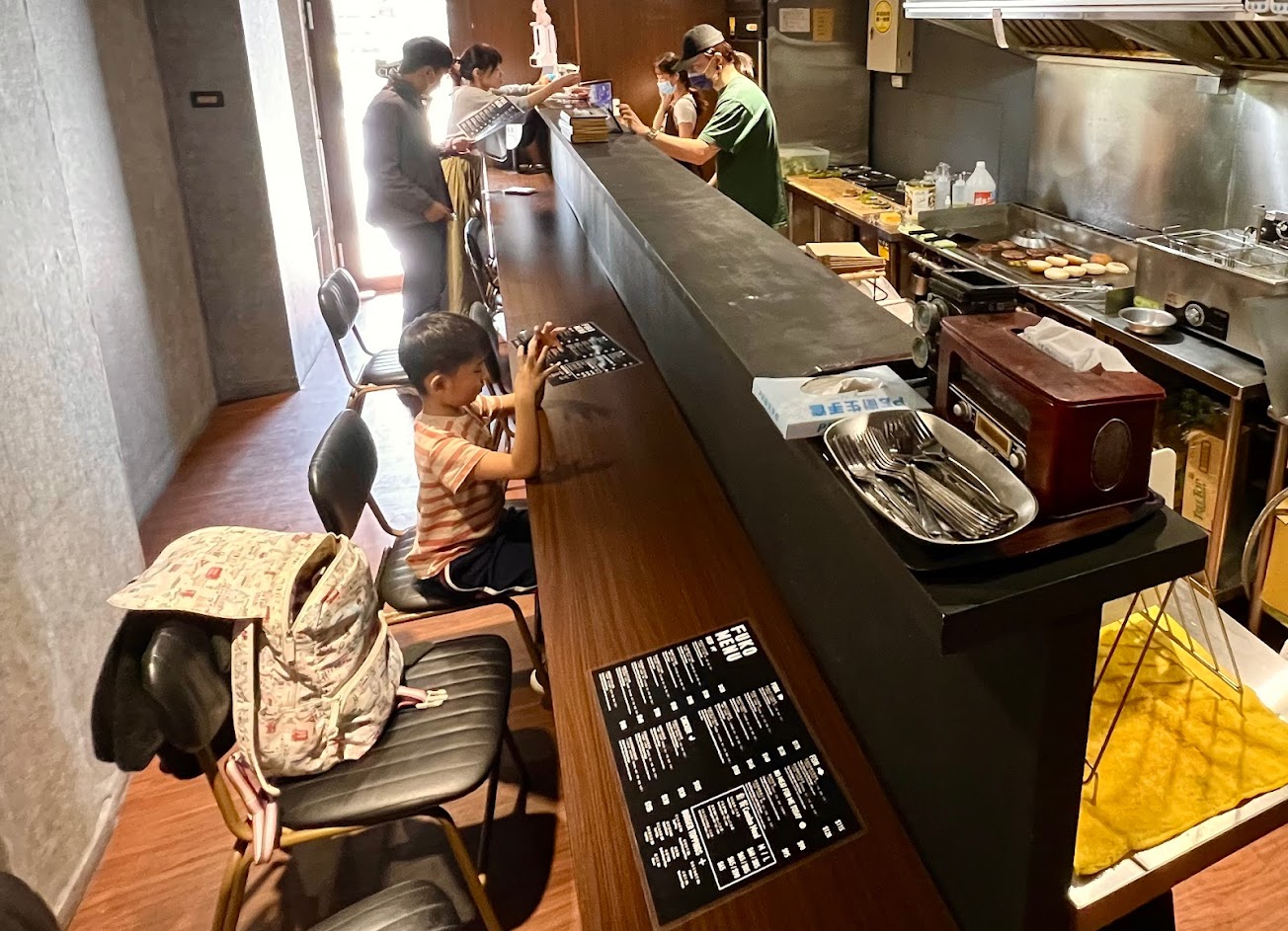 當初想要吃漢堡,無奈北投周遭一間美式漢堡店都沒有,只好跑到靠近石牌這裡。低調的一間漢堡店,從外觀到裝潢都不太顯眼。所幸店址位於轉角處,不至於找不到。周遭有停車格但都停滿,紅線可能有不少違停阻擋視線,建議繞遠一點往立農街的巷口找機車或汽車停車位。