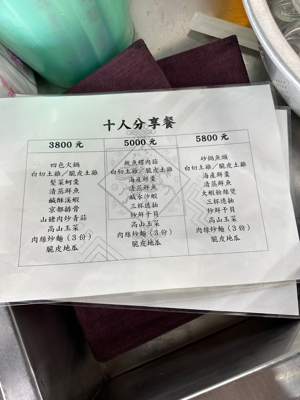 #桌菜$5000,白斬雞或脆皮雞任選