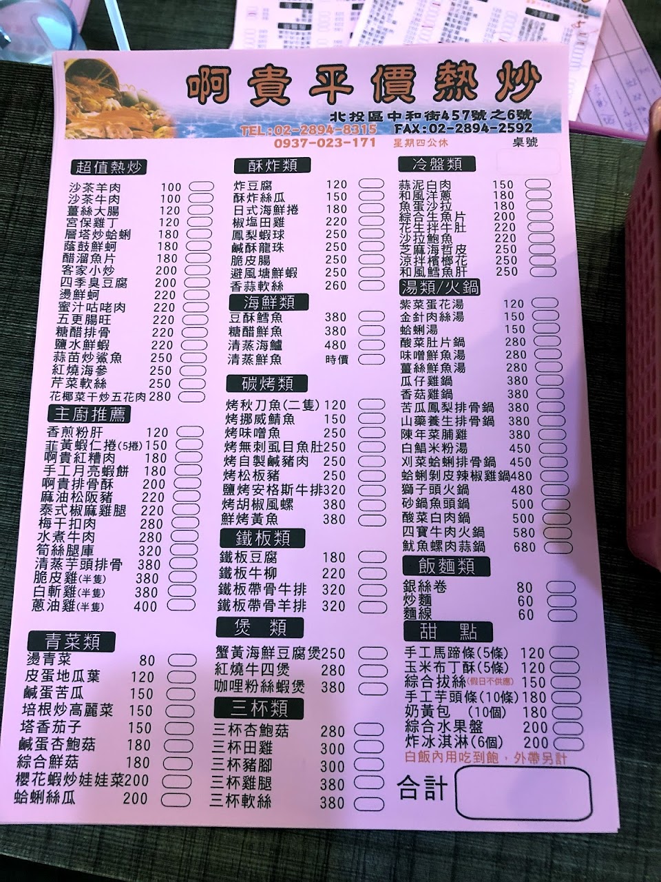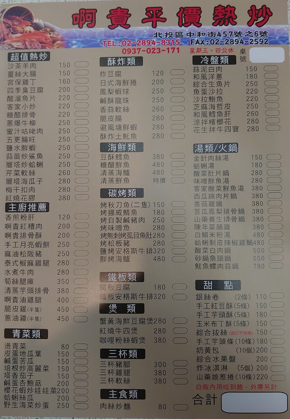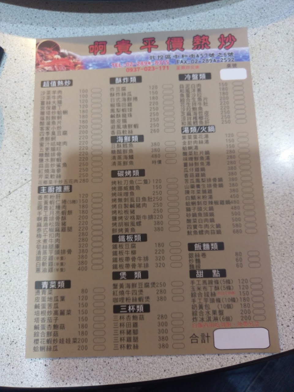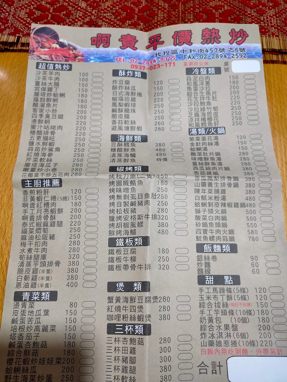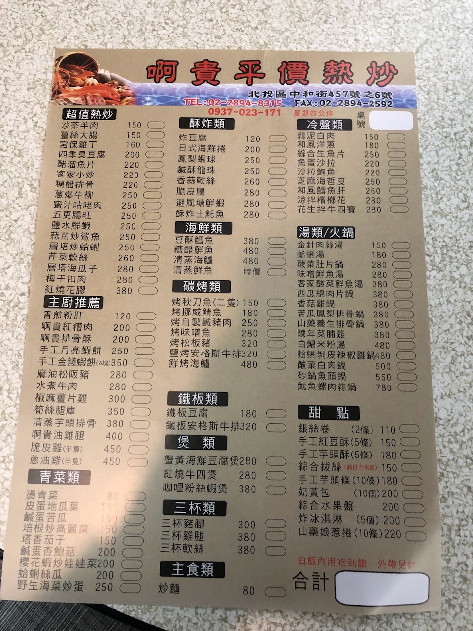 2024最新在地推薦餐廳的菜單_阿貴平價海鮮熱炒的菜單、圖片