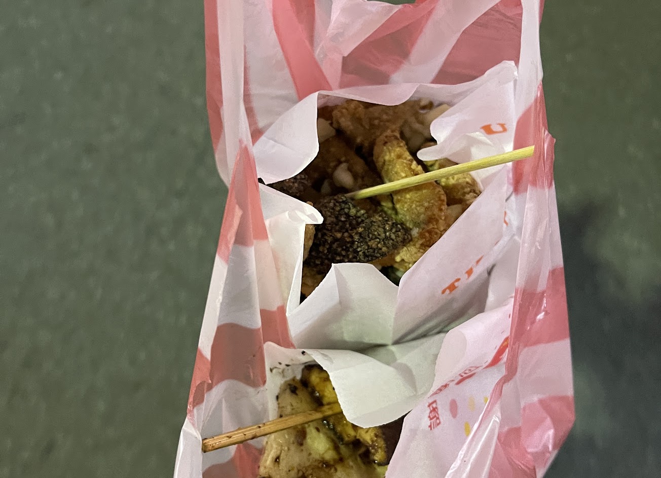 不錯,價錢也很佛心 雞肉串有點孜然味?!一大串很滿足 不過美中不足的是蔬菜類品項很會出水,卻沒有分開放,導致到家整包濕濕的,影響炸物酥脆口感 整體口味還是很不錯的