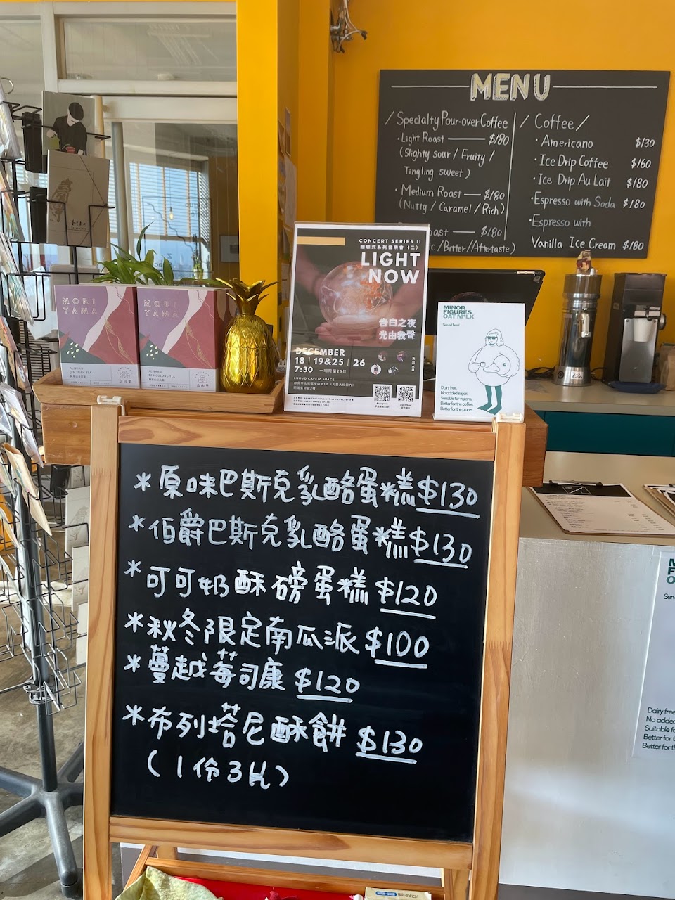 飲料甜點選擇多。店員很專業親切的幫我選了適合的餐點。店很可愛。超適合週末逛逛後來這邊悠閒的喝咖啡看日落