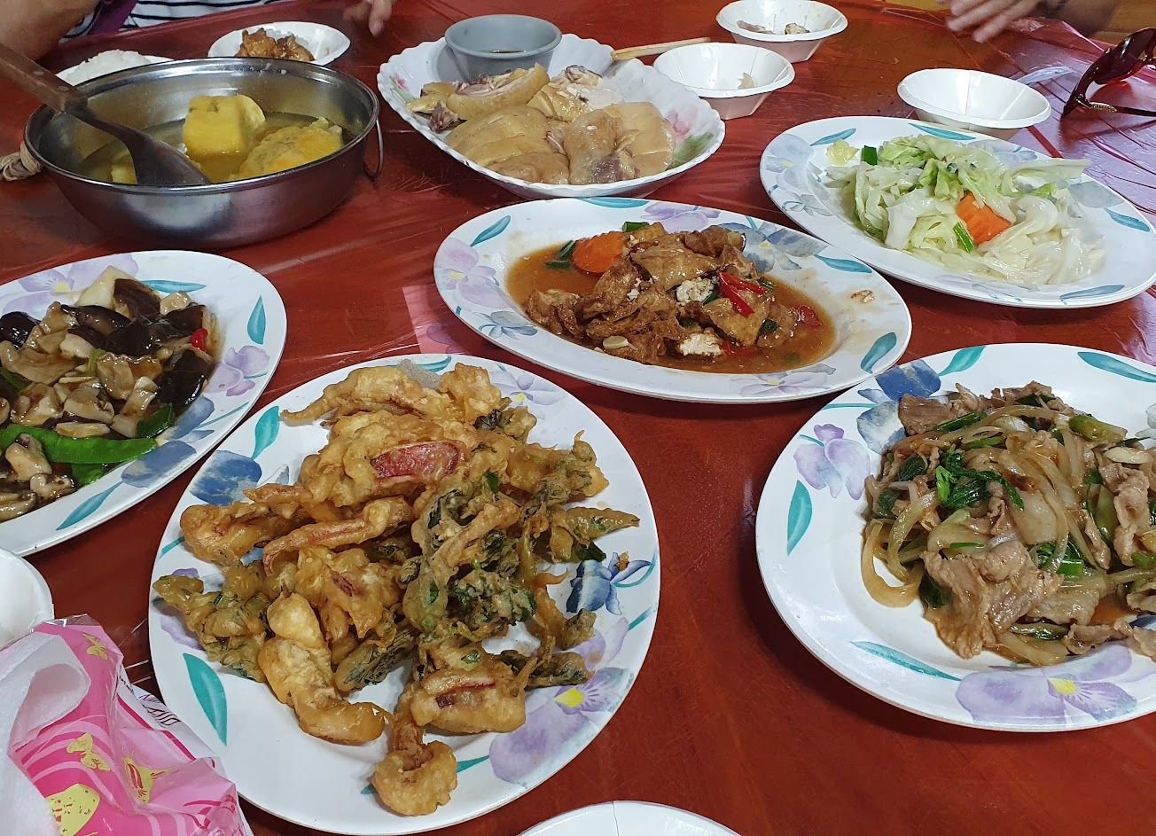 塔香茄子 鳳梨蝦球 銀絲捲 香菇筍片湯 枸杞山藥湯 山藥雞湯 手工小饅頭 丁香山蘇 鹽酥白蝦 麻油麵線 薑絲 大腸 炒山蘇 炒檳榔花 蒜頭雞湯 地瓜湯 炸豆腐 四季肥腸 冬瓜竹筍排骨湯