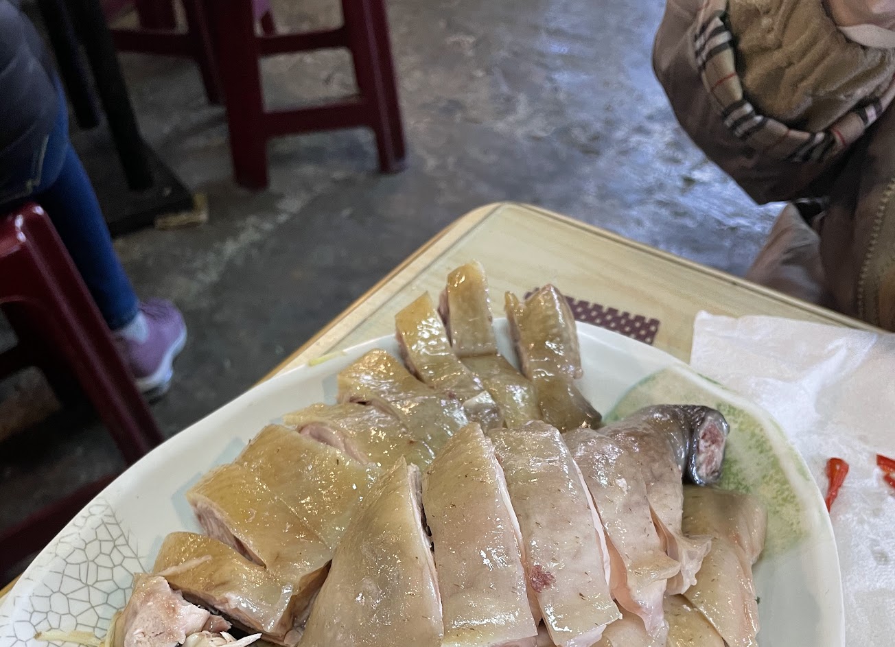傳中的土雞果然非常好吃,皮跟肉間還有雞凍,沾點醬油讓人一口接一口,連雞胸肉都不柴