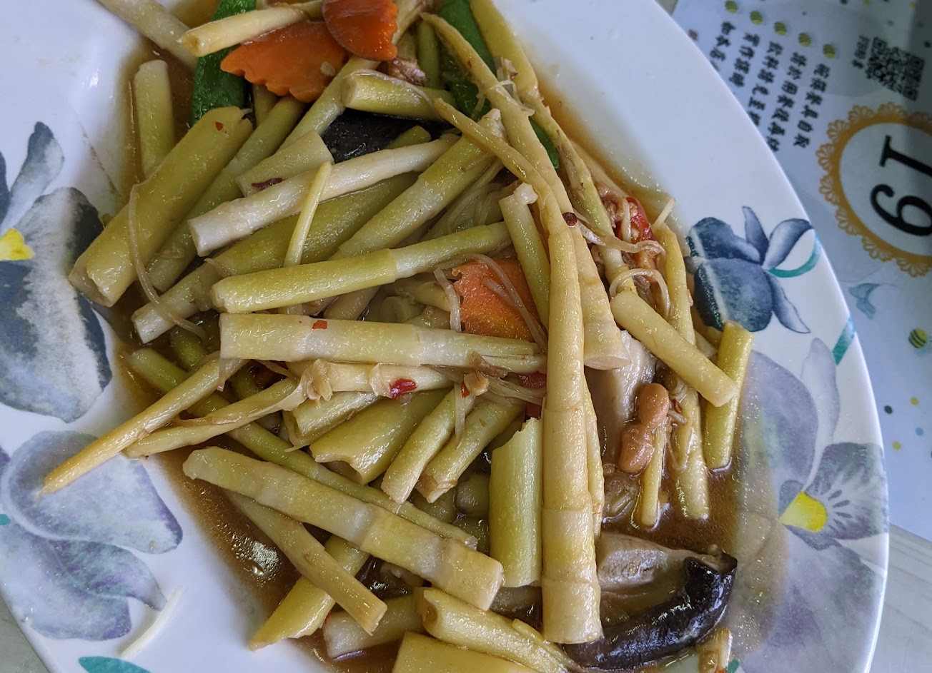 每次爬完二子坪下山回程必吃的餐廳,必點白斬雞、炸豆腐、銀絲捲、青菜(不管高麗菜、龍鬚、地瓜葉、山蘇通通都好吃耶) 人多或冬天的時候會加點湯(推狗尾雞湯,近期想換口味點了冬瓜竹筍排骨湯也不錯),下次想點劍筍吃看看。