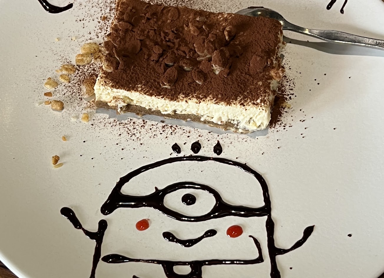 甜點是點提拉米蘇,店家會畫可愛圖案,且提拉米蘇真的還滿好吃的唷!